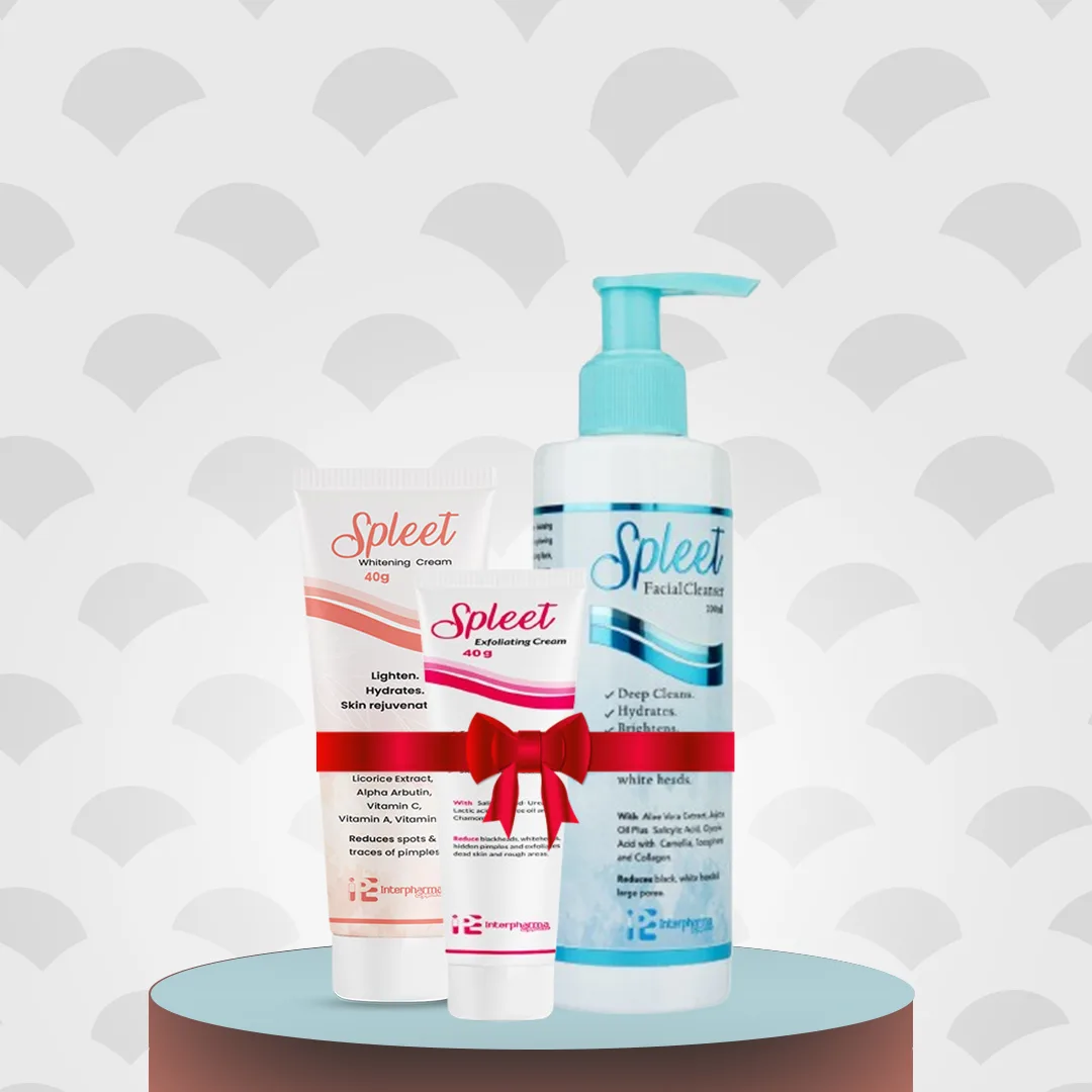 بكچ التفتيح والعناية بالبشرة – روتين متكامل لبشرة صافية ومضيئة لو بتعاني من التصبغات، آثار الحبوب، بهتان البشرة أو عدم توحيد اللون، بكچ التفتيح من Spleet هو الحل المثالي ليكي. بكچ متكامل مكوّن من 3 منتجات طبية بيشتغلوا مع بعض كروتين يومي فعال وآمن،